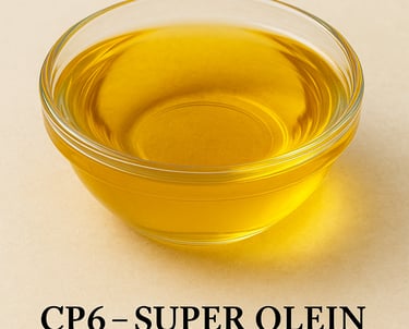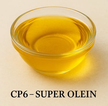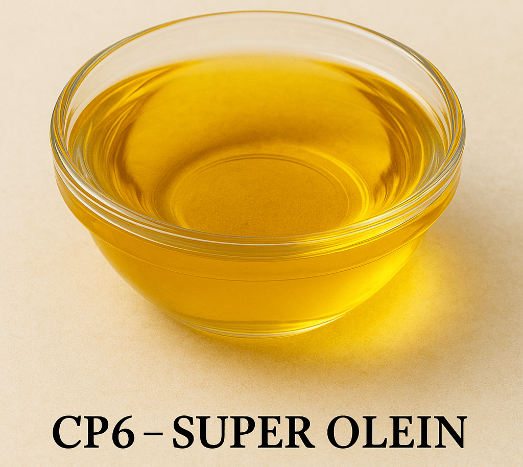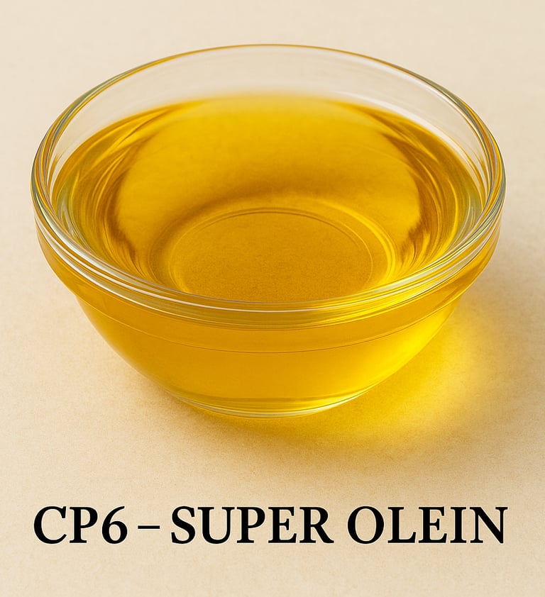 RBD Palm Olein CP6, also known as Super Olein, is the softer and more fluid fraction of standard palm olein. It is produced through an additional fractionation process that removes more solid fats, making the oil clearer, lighter, and highly fluid.